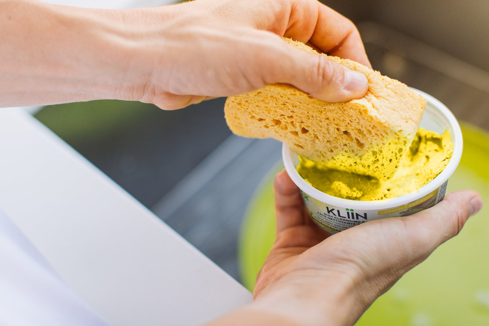 Utiliser la pâte à vaisselle KLIIN pour laver l’évier, les comptoirs, la cuisinière, le four, la hotte, les surfaces en vitrocéramique, les vitres de douche (résidus de savon), la baignoire ou la coque du bateau.